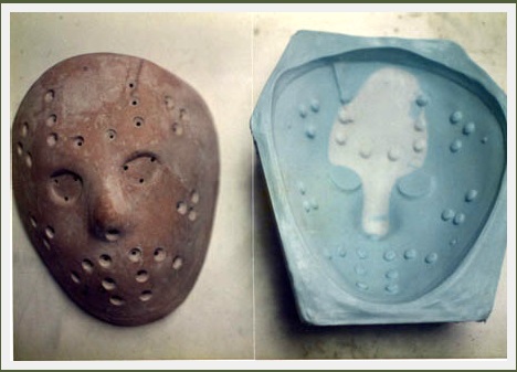 Here is a very rare photo of the original buck used to pull the masks and the negative mold it was formed from: